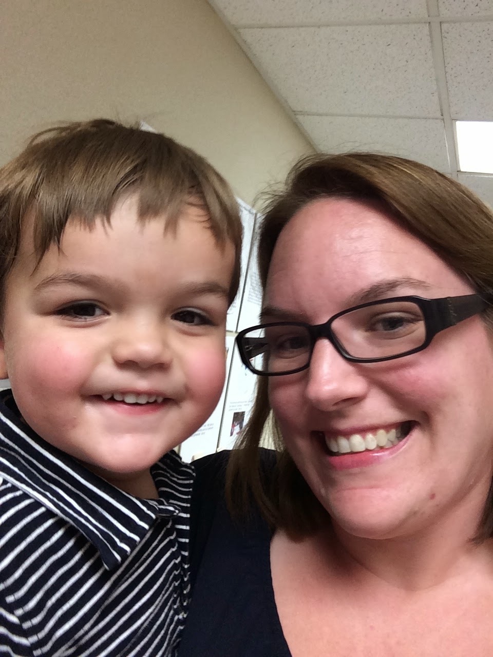 We also get daily e-mail updates from his I.S. every afternoon. She said he had a great first day! He had a little difficulty with transitions, especially when he had to stop doing something that he loved. But, he was easily redirected and would quickly join in the new activity. That's all pretty standard behavior for a two year old, and he had a easier day than a lot of his classmates! She is very excited for this year and so are we!